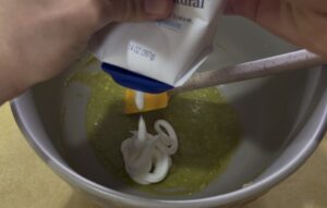 Once the dry ingredients and whisked together, add in heavy cream and whisk until combined.