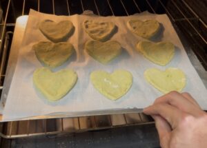 On a lightly floured surface, roll out the dough to about 1/4 inch thickness and use cookie cutters so you can be able to cut your desired shapes.