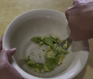In a mixing bowl, cream together the mashed avocado and truvia until smooth and well combined.