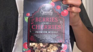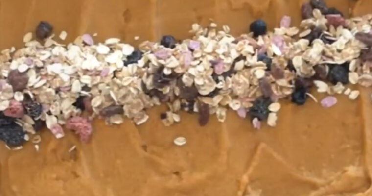 - Sprinkle the oats berries and cherries evenly over the sweet potato layer.