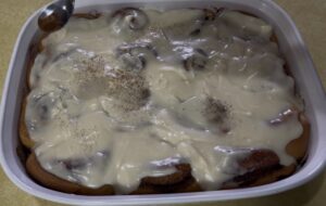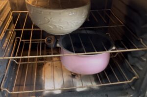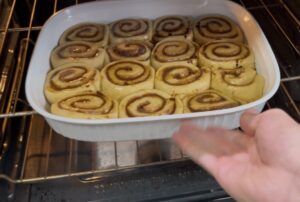 When it comes to making cinnamon rolls or any kind of bread, the best advice I can give you when you want to start and proof your dough is to get a pot full of boiling water and put the dough covered in plastic wrap in a turned off oven. It’s faster to proof and you won’t have to wait an hour for the dough to rise. Since I don’t have a proofer, this is the best method for me.