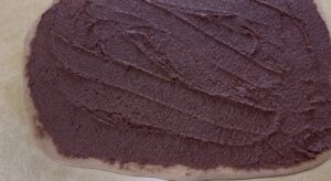 • Spread the filling evenly over the dough.