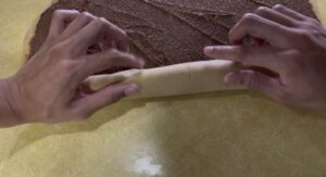 • Starting from the long end, tightly roll the dough into a log.