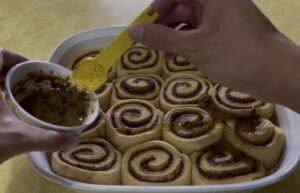 • You can either pour in 1 cup of heavy whipping cream in the pan of cinnamon rolls before baking or get a small bowl of melted butter then whisk in your maple syrup and espresso powder. Drizzle them before baking for an extra layer of flavor. Since I don't have heavy whipping cream, I have my own method.