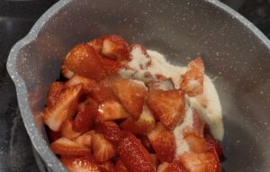 - In a medium saucepan, combine the chopped strawberries, sugar, and lemon juice.